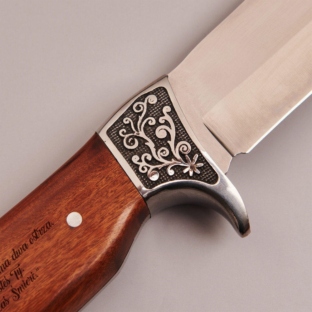 Prawdziwy miłośnik noży będzie zachwycony niezwykłym cytatem wygrawerowanym na dopasowanym etui oraz jego imieniem i nazwiskiem na rękojeści. To dobry prezent na każdą okazję.