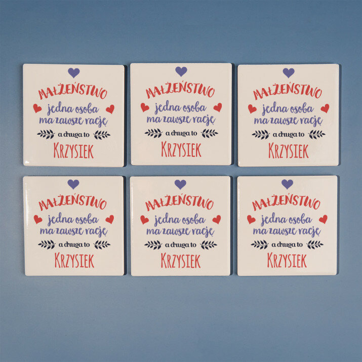 Podkładki ceramiczne z pięknym wzorem to przydatny dodatek do każdego wnętrza! Chronią powierzchnię, na której stawiamy naczynie przed zabrudzeniem lub zarysowaniem. Możesz wybrać odpowiadającą dla Ciebie ilość podkładek - 2, 4 lub 6 sztuk.Wymiary: 9 x 9 cm, grubość: 6 mm