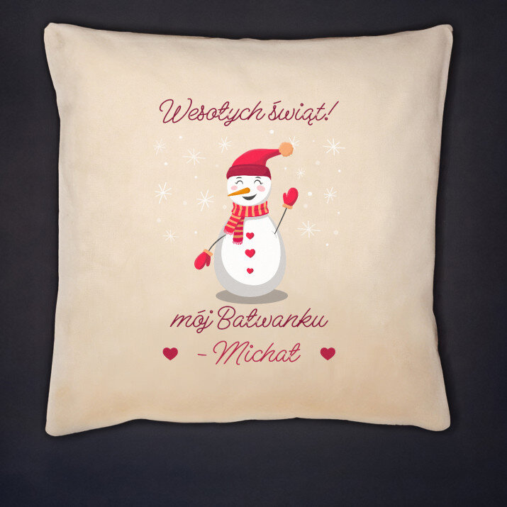 Już niedługo koniec roku. Twój kochany Bałwanek musi być bardzo zmęczony całym rokiem pracy, przygód, wyjazdów czy innych atrakcji. Niech zbierze siły na nadchodzący Nowy Rok i dobrze wypocznie podczas świąt Bożego Narodzenia! Idealnie pomoże mu w tym piękna, mięciutka poduszka.WYKONANIE