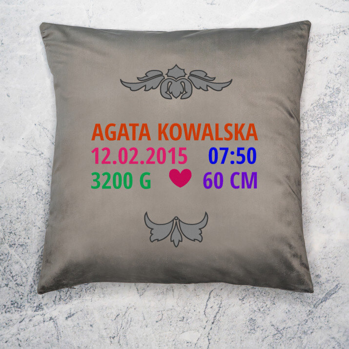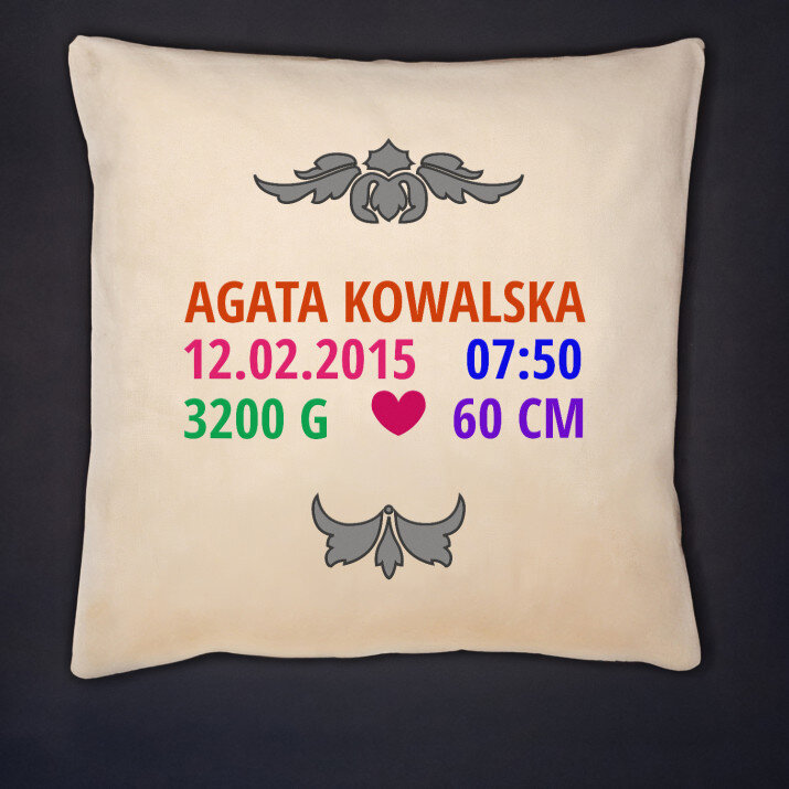 Która mama nie lubi dekorować pokoiku swojej pociechy? Poduszka z imieniem oraz innymi ważnymi informacjami o dziecku może być idealna do wystroju wnętrza a także jako prezent .WYKONANIE