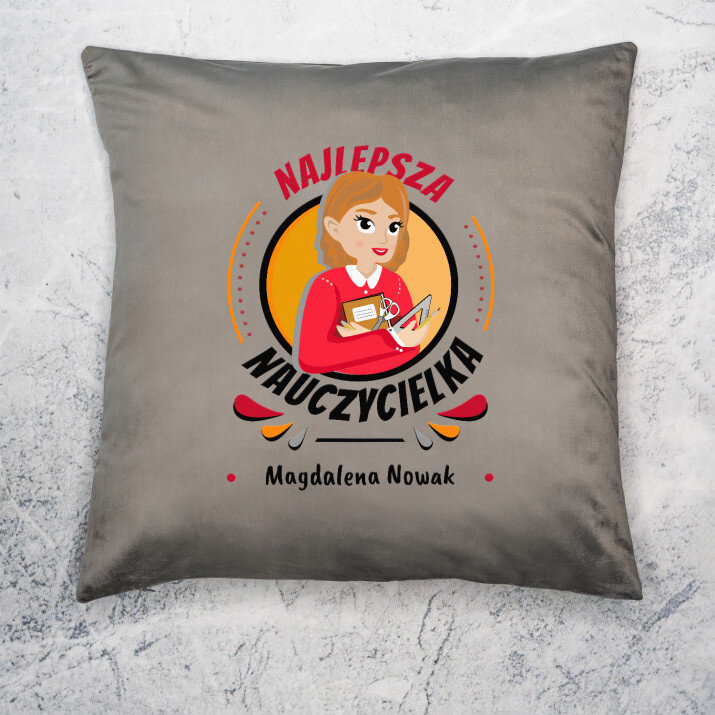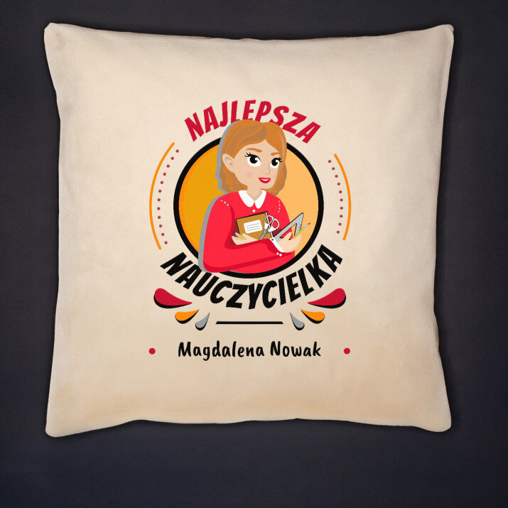 Praca nauczyciela jest nieziemsko męcząca. W końcu trzeba przez kilka godzin uciszać rozrabiających na lekcji łobuzów, słuchać krzyków i rozgardiaszu na przerwach, a popołudniami (tak w ramach relaksu, oczywiście!) sprawdzać niezliczone stosy klasówek. Pokaż swojej nauczycielce, że doceniasz to poświęcenie i podaruj jej tę mięciutką, imienną podusię. Na pewno sprawisz jej kupę radości, a i może w końcu będzie mogła spokojnie się wyspać!WYKONANIE