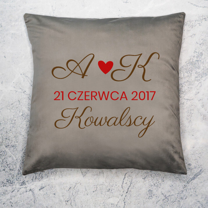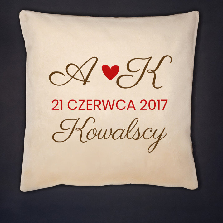 Wspaniałym prezentem i pamiątką najważniejszego dnia w życiu pary - czyli ślubu będzie poduszka z nadrukowaną datą i nazwiskiem. Taki prezent będzie świetną ozdobą przypominającą tę ważną datę.WYKONANIE