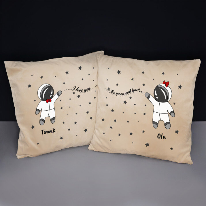 Ten zestaw to strzał w dziesiątkę! Solidne wykonanie i wzór To the moon and back sprawiają, że te poduszki są niezwykle romantyczne.