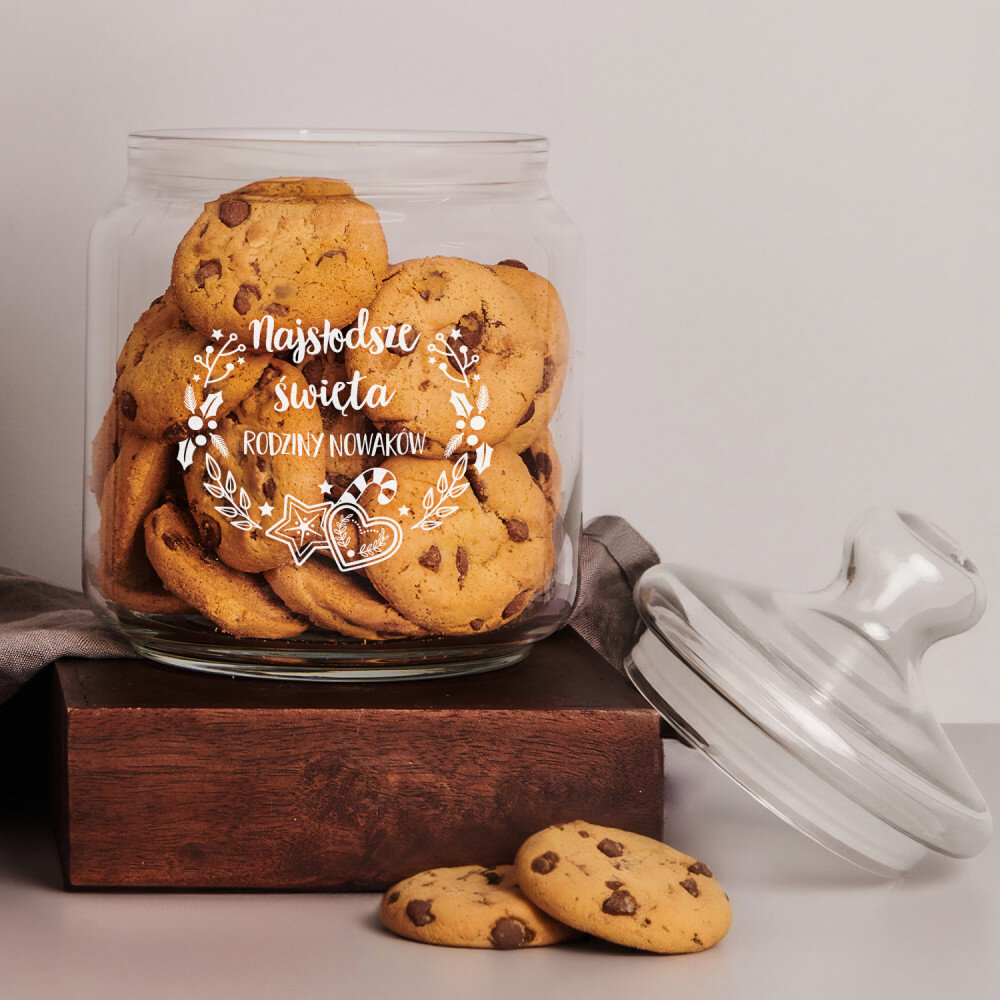 Świąteczny czas to moment spotkań rodzinnych, wręczania sobie prezentów, ale i słodkiego obżarstwa. Należysz do bożonarodzeniowych łasuchów, którym ślinka cieknie na widok wspaniałych wypieków? Sprezentuj sobie nasz słoik na ciastka! Wygląda wspaniale, posiada grawerunek nawiązujący bezpośrednio do świąt, a w jego wnętrzu możesz przechowywać nie tylko słodkości.WYKONANIE