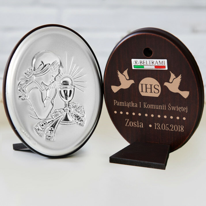 Srebrny obrazek z grawerem to doskonały sposób na uczczenie Pierwszej Komunii Świętej. Personalizacja jest efektowna, a obrazek jest trwały.