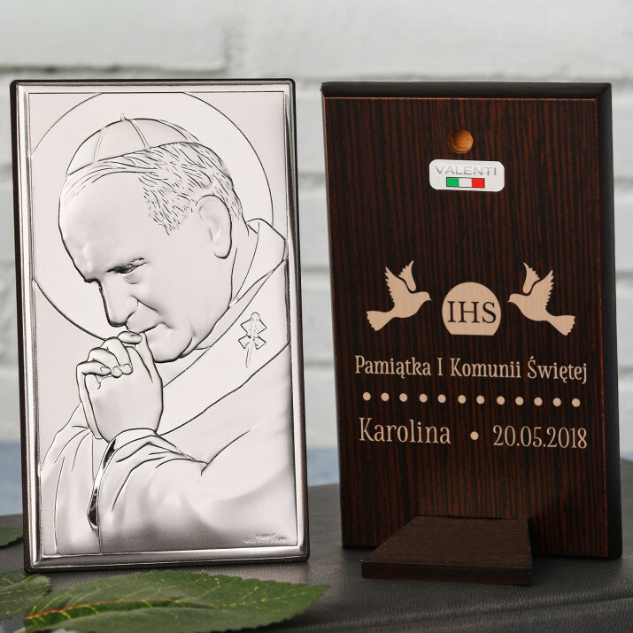 Pierwsza komunia święta podziękowania - Papież - Srebrny Obrazek z Grawerem