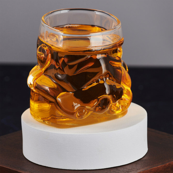 Taka szklanka to prawdziwy skarb. Zrobi furorę podczas wieczoru z kumplami, każdej imprezie ze znajomymi, możesz również w samotności podziwiać jej genialny kształt. Nalej do niej co tylko chcesz, whisky, drinka, mrożoną herbatę, sok czy nawet mleko, a w magiczny sposób ukaże Ci się hełm legendarnego Stormtroopera.WYKONANIE