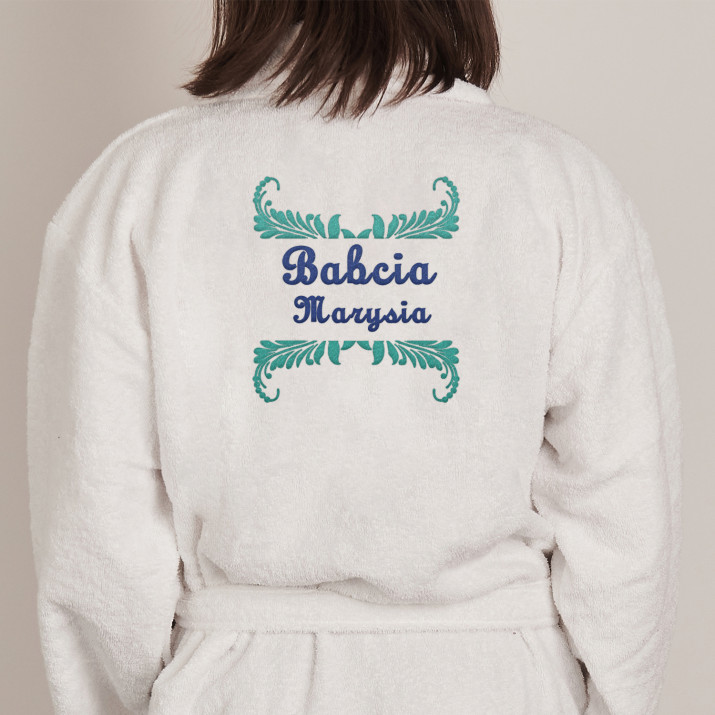 Uniwersalny szlafrok w kolorze białym, wykonany ze 100% bawełny frotte. Wygodny, ładny, mięciutki - zapewni doskonały komfort, gdy wszystkie troski dnia odejdą w dal i nadejdzie czas na relaks. Ogrzeje również zaspane ciałko zaraz po przebudzeniu. Szlafrok ozdobiony jest personalizowanym haftem, który pięknie wygląda, poprawia samopoczucie i zamienia produkt w wyjątkowy upominek!Szlafrok ma elegancki fason z kołnierzykiem i kieszeniami, aby można było zabłysnąć na wieczornym pokazie mody podomowej. Rozmiar szlafroka uniwersalny, gramatura 350 g/m2. Unisex.