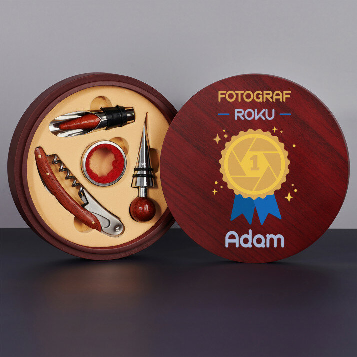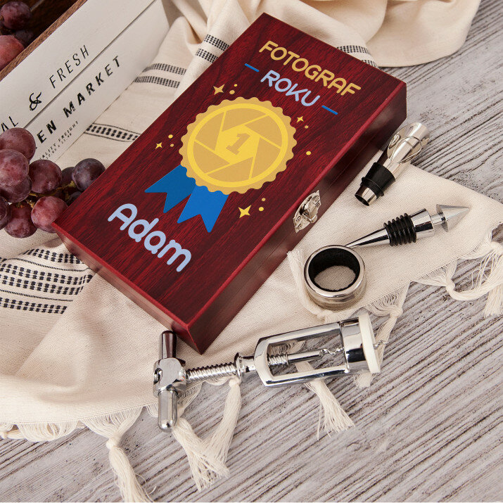 Prezent dla fotografa. Niezwykle elegancki zestaw do wina w nowoczesnym i oryginalnym wydaniu to świetny pomysł na prezent z okazji urodzin dla bliskiego Twemu sercu fotografa. Na pewno sprawisz mu tym radość!
