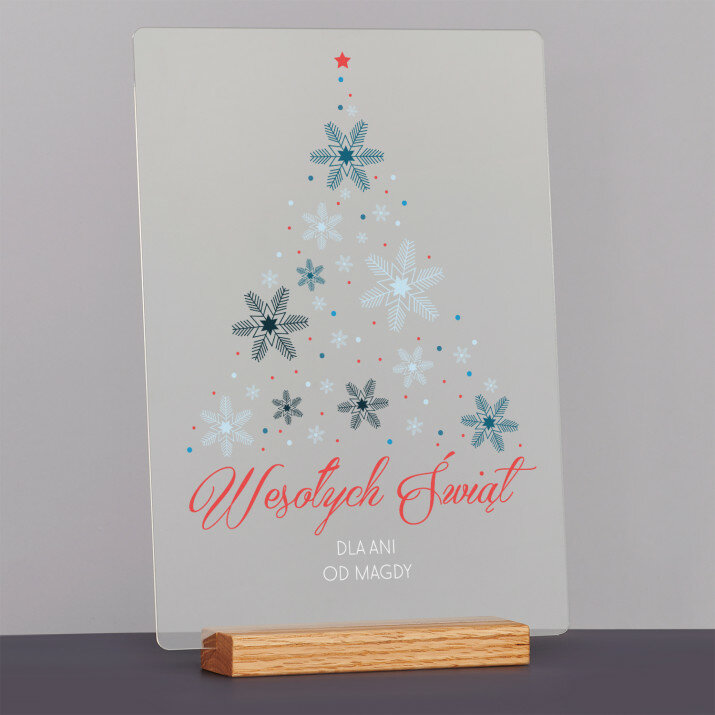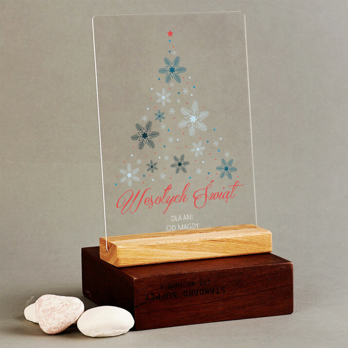 Wydruk na szkle akrylowym A4 z podstawką drewnianą