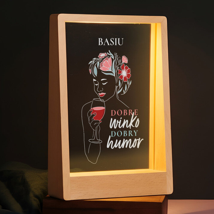 Dobre winko dobry humor - Wydruk na szkle akrylowym z podstawką to urocza dekoracja, która podkreśla naszą miłość do wina i dobrego humoru.