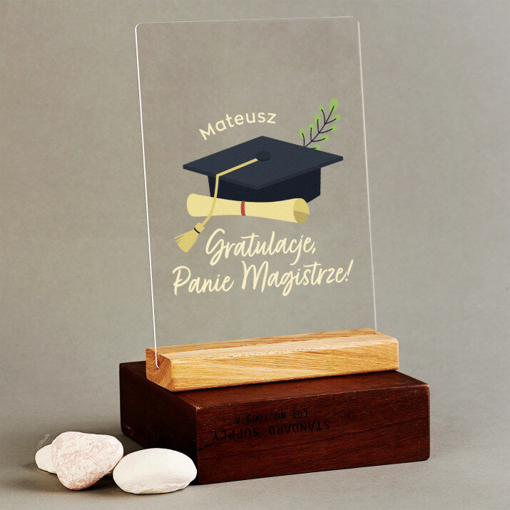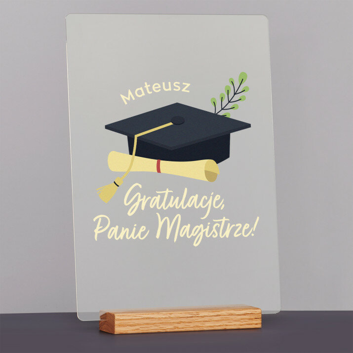 Ten wydruk na szkle akrylowym to idealny prezent dla absolwenta. Gratulacje panie magistrze!
