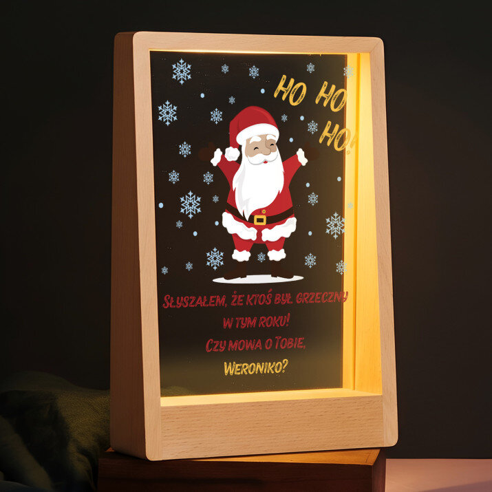Ho ho ho - Wydruk na szkle akrylowym z podstawką to urocza dekoracja, która wprowadza świąteczny nastrój do naszego domu.