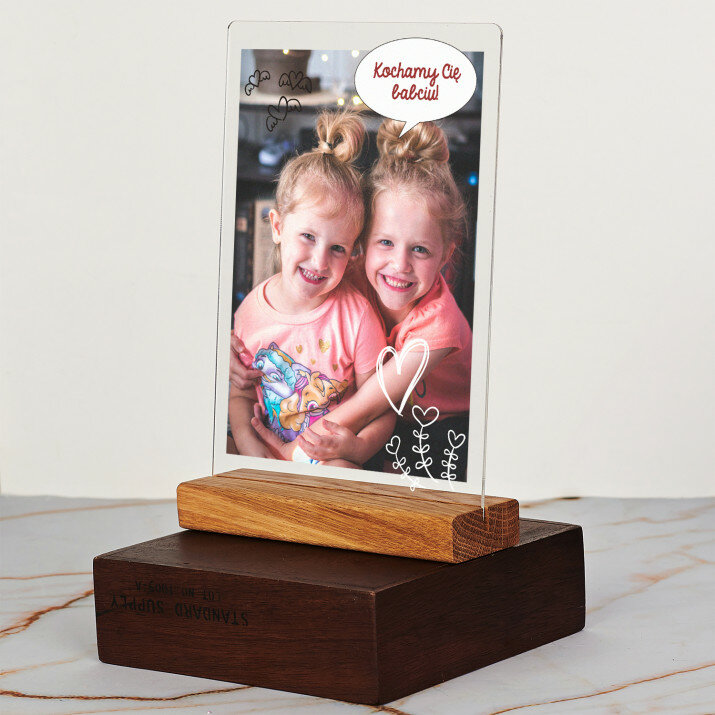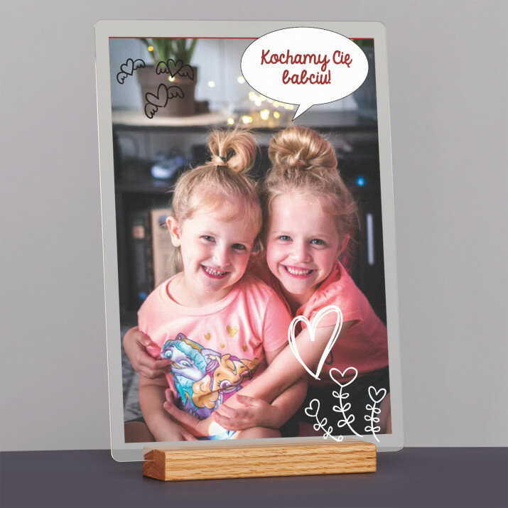 Wyjątkowa pamiątka, która zachwyci obdarowaną osobę! Wydruk na bezbarwnym szkle akrylowym (pleksiglas) o grubości 2 mm to upominek na lata. Materiał wyróżnia się doskonałą jakością powierzchni i sztywnością, jest odporny na uszkodzenia oraz warunki atmosferyczne. Dzięki eleganckiej, drewnianej podstawce wydruk można od razu postawić na półce. Gwarantujemy, że będzie to świetna niespodzianka dla Twoich bliskich!Oferujemy cztery różne opcje dla tego wydruku: