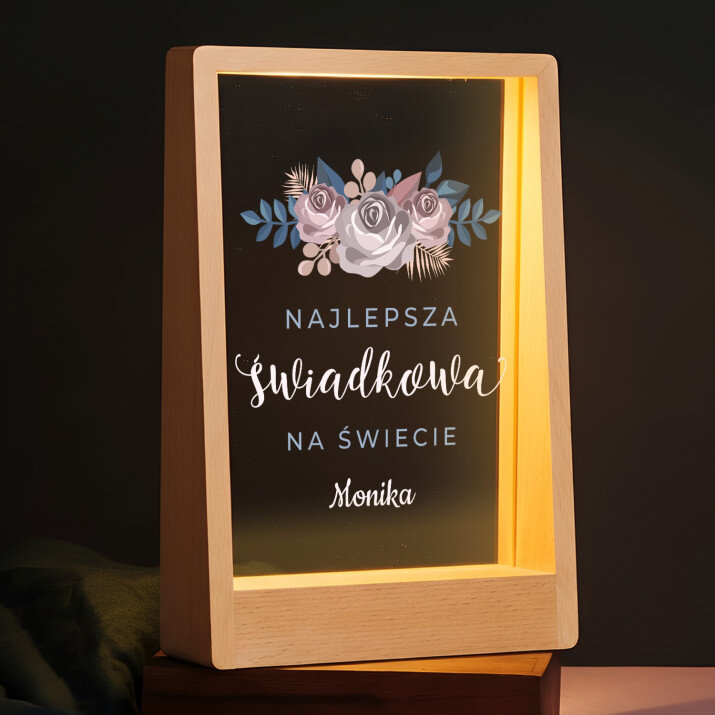 Ten wydruk na szkle akrylowym z grawerem to wspaniały prezent dla mojej świadkowej. Jakość wykonania jest imponująca, a podstawa dodaje mu elegancji.