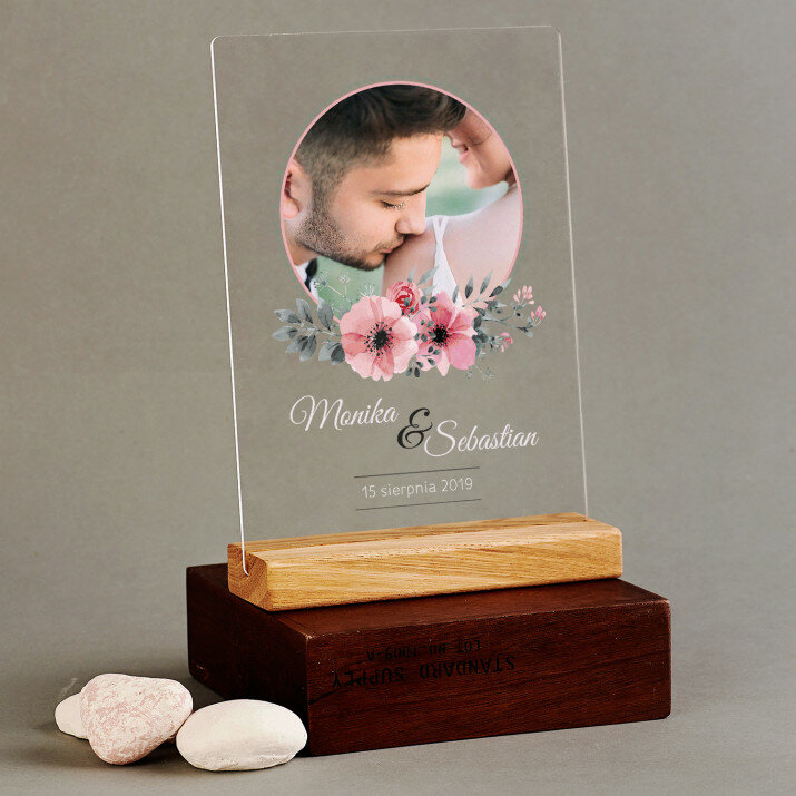 Wyjątkowa pamiątka, która zachwyci obdarowaną osobę! Wydruk na bezbarwnym szkle akrylowym (pleksiglas) o grubości 2 mm to upominek na lata. Materiał wyróżnia się doskonałą jakością powierzchni i sztywnością, jest odporny na uszkodzenia oraz warunki atmosferyczne. Dzięki eleganckiej, drewnianej podstawce wydruk można od razu postawić na półce. Gwarantujemy, że będzie to świetna niespodzianka dla Twoich bliskich!Oferujemy cztery różne opcje dla tego wydruku: