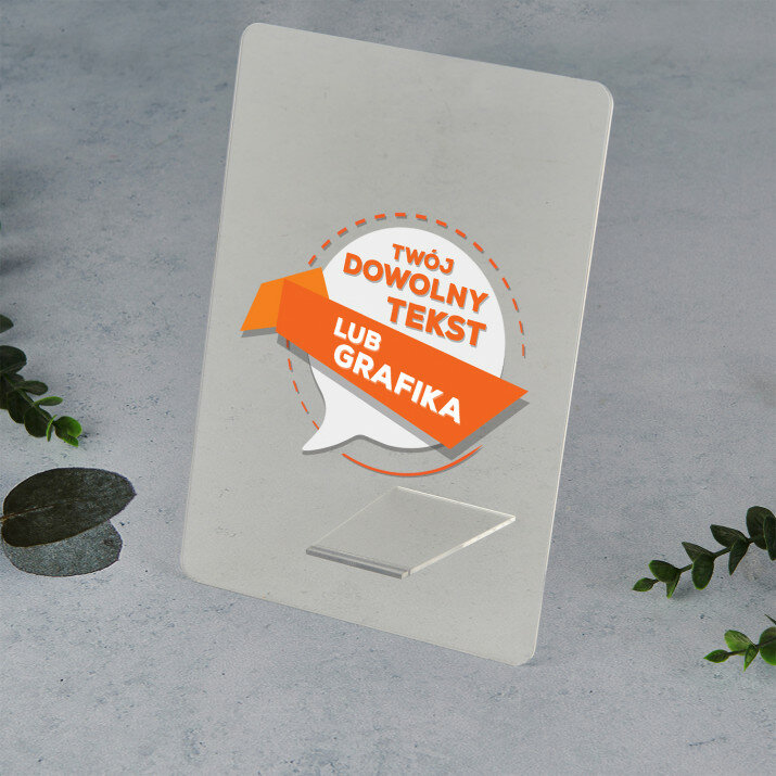Wydruk na szkle akrylowym z podstawką z akrylu.