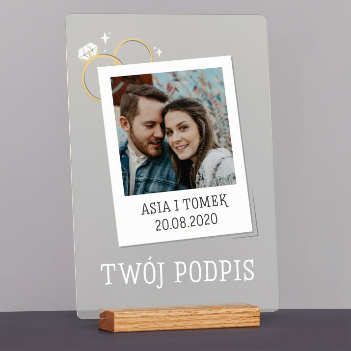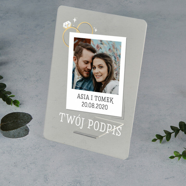 Wydruk na szkle akrylowym z podstawką Zdjęcie i podpis ślubne to piękna pamiątka z naszego ślubu. Jakość wykonania jest imponująca.