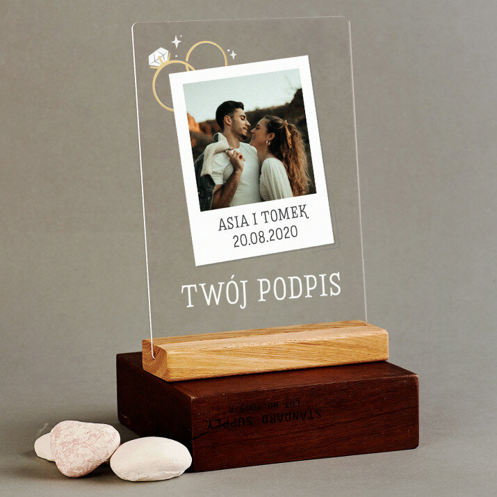 Wyjątkowa pamiątka, która zachwyci obdarowaną osobę! Wydruk na bezbarwnym szkle akrylowym (pleksiglas) o grubości 2 mm to upominek na lata. Materiał wyróżnia się doskonałą jakością powierzchni i sztywnością, jest odporny na uszkodzenia oraz warunki atmosferyczne. Dzięki eleganckiej, drewnianej podstawce wydruk można od razu postawić na półce. Gwarantujemy, że będzie to świetna niespodzianka dla Twoich bliskich!Oferujemy cztery różne opcje dla tego wydruku:
