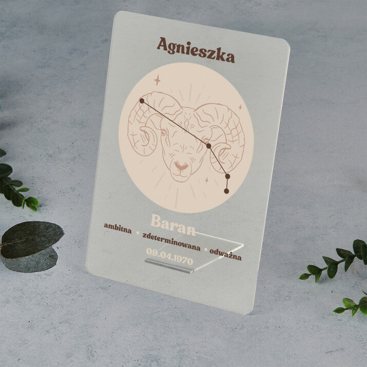 Ten wydruk na szkle z podstawką to prezent, który na pewno przypadnie do gustu miłośnikom astrologii i znaków zodiaku.