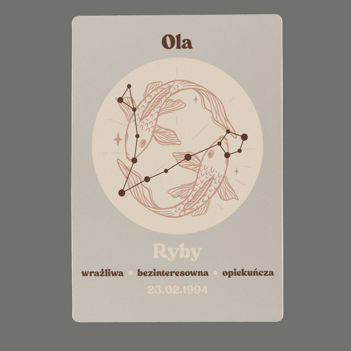 Ten wydruk na szkle akrylowym to wspaniały sposób na podkreślenie swojej tożsamości i dumy z bycia urodzonym pod znakiem Ryb.