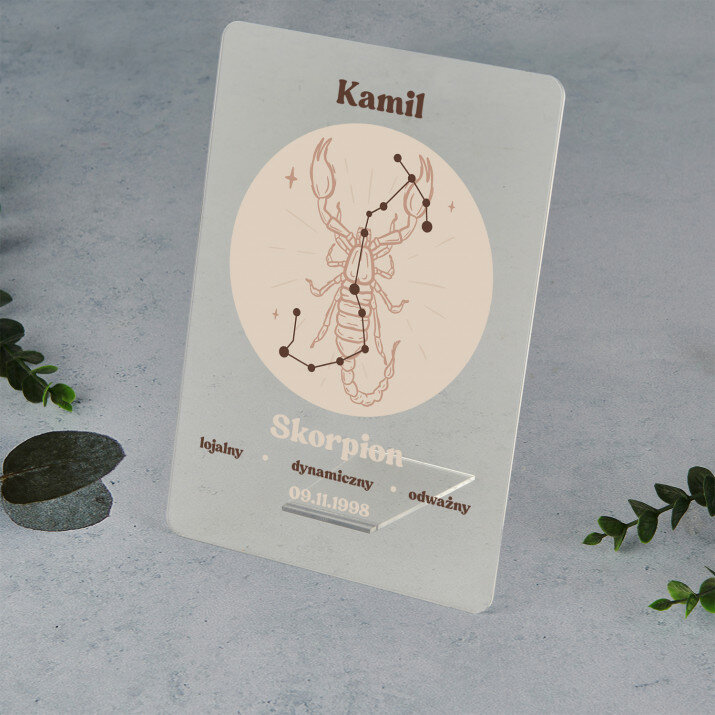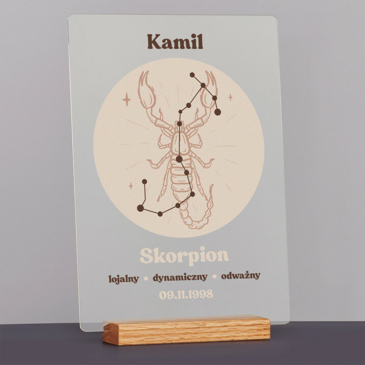 Wydruk na szkle akrylowym A4 z podstawką drewnianą