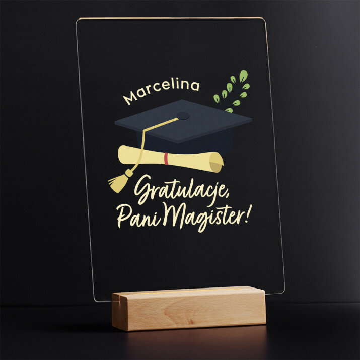 Wydruk na szkle akrylowym A4 z podstawką drewnianą LED