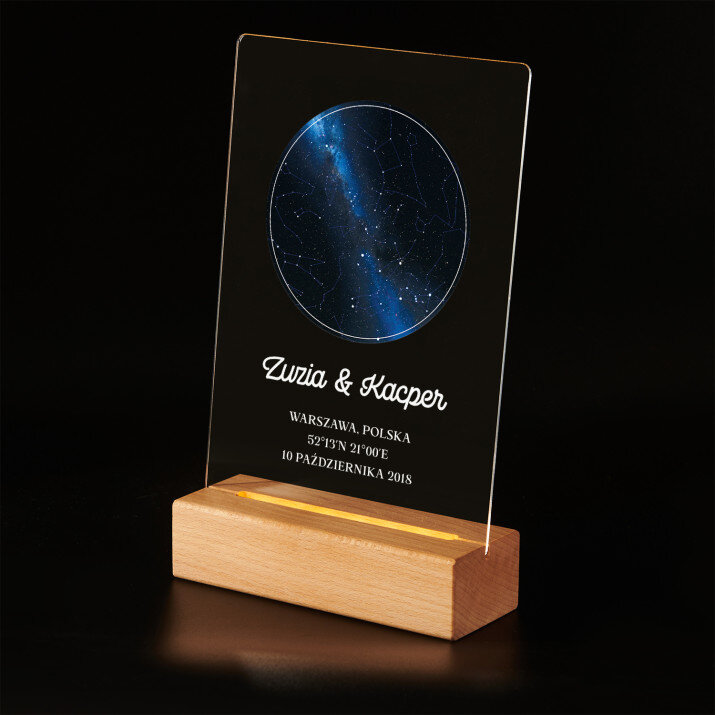 Mapa gwiazd na szkle akrylowym to niezwykłe dzieło sztuki. Świetny pomysł na oryginalny prezent.