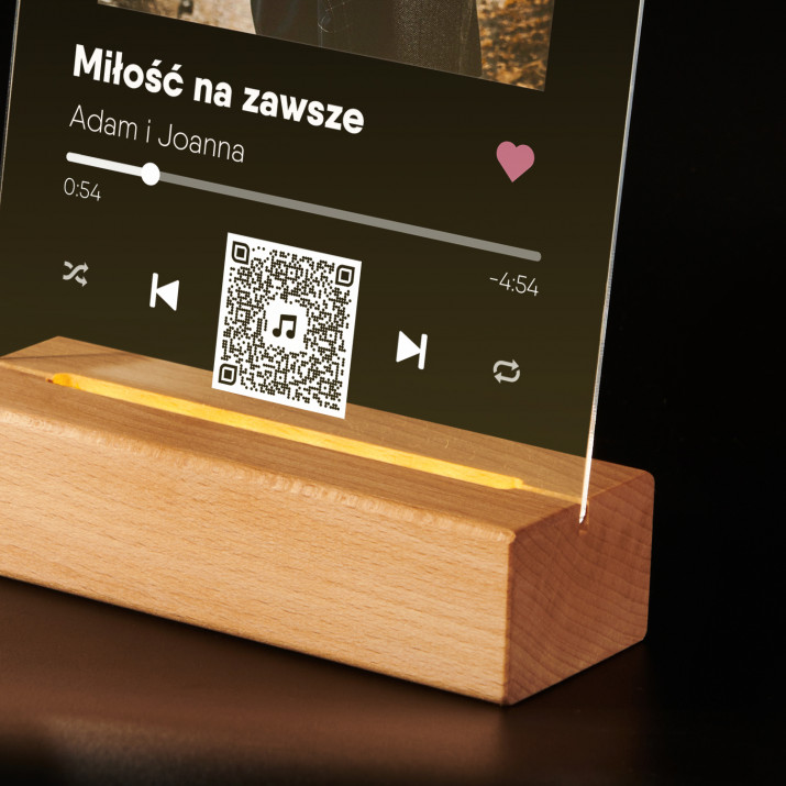 Wydruk na szkle akrylowym z podstawką drewnianą LED.