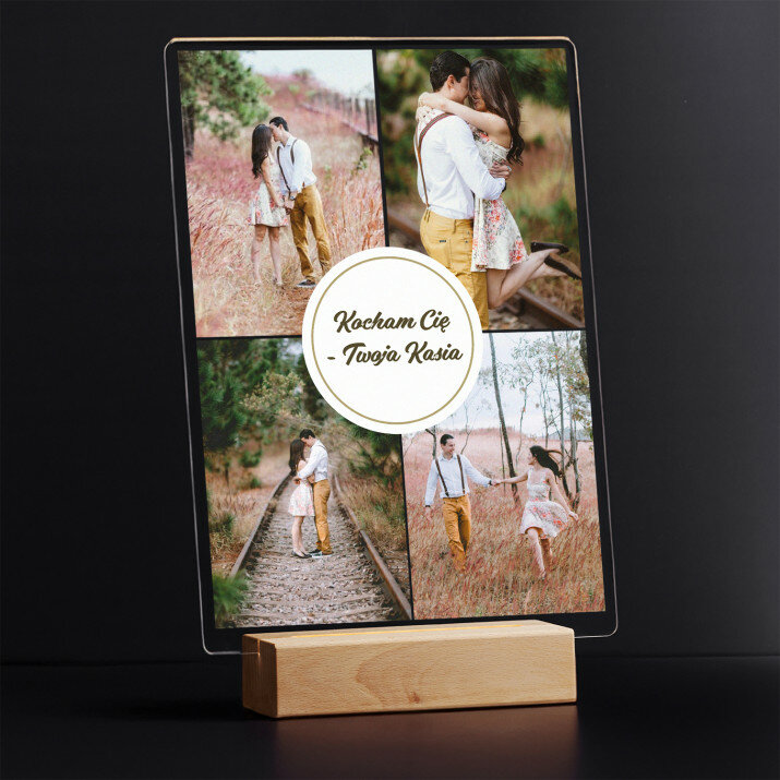 Wyjątkowa pamiątka, która zachwyci obdarowaną osobę! Wydruk na bezbarwnym szkle akrylowym (pleksiglas) o grubości 2 mm to upominek na lata. Materiał wyróżnia się doskonałą jakością powierzchni i sztywnością, jest odporny na uszkodzenia oraz warunki atmosferyczne.Podstawka LED wykonana jest z drewna bukowego. Temperatura barwowa 3000K zapewnia ciepłe, nastrojowe światło, dzięki któremu personalizowana pamiątka będzie wyglądać niczym najpiękniejszy skarb. Gwarantujemy, że będzie to świetna niespodzianka dla Twoich bliskich!