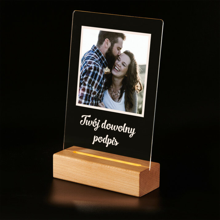 Wyjątkowa pamiątka, która zachwyci obdarowaną osobę! Wydruk na bezbarwnym szkle akrylowym (pleksiglas) o grubości 2 mm to upominek na lata. Materiał wyróżnia się doskonałą jakością powierzchni i sztywnością, jest odporny na uszkodzenia oraz warunki atmosferyczne.Podstawka LED wykonana jest z drewna bukowego. Temperatura barwowa 3000K zapewnia ciepłe, nastrojowe światło, dzięki któremu personalizowana pamiątka będzie wyglądać niczym najpiękniejszy skarb. Gwarantujemy, że będzie to świetna niespodzianka dla Twoich bliskich!