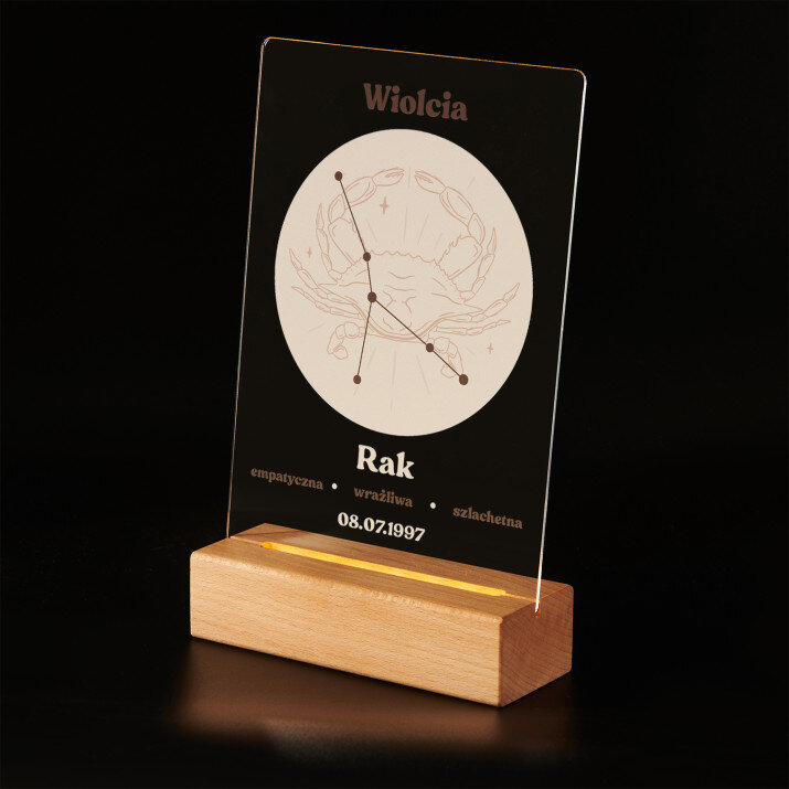 Wydruk na szkle akrylowym z podstawką drewnianą LED.