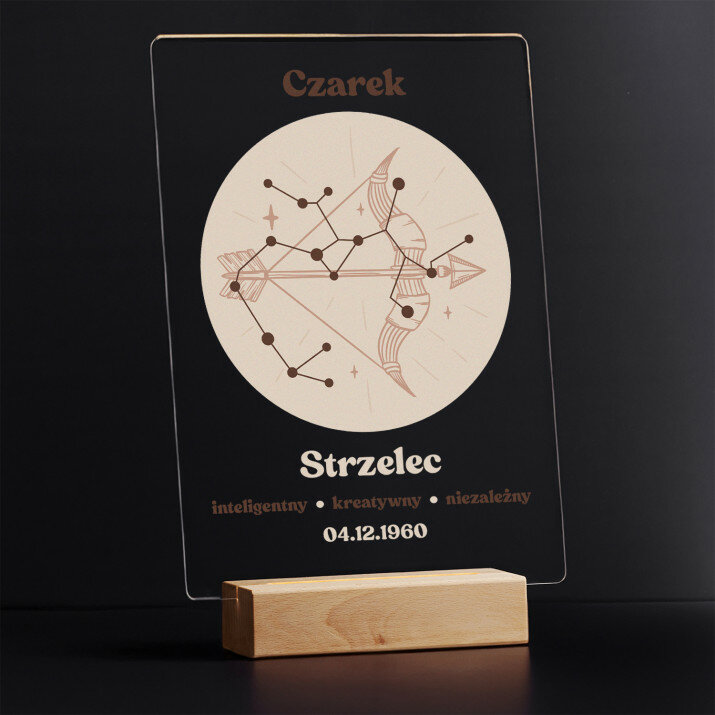 Wydruk na szkle akrylowym z podstawką drewnianą LED.