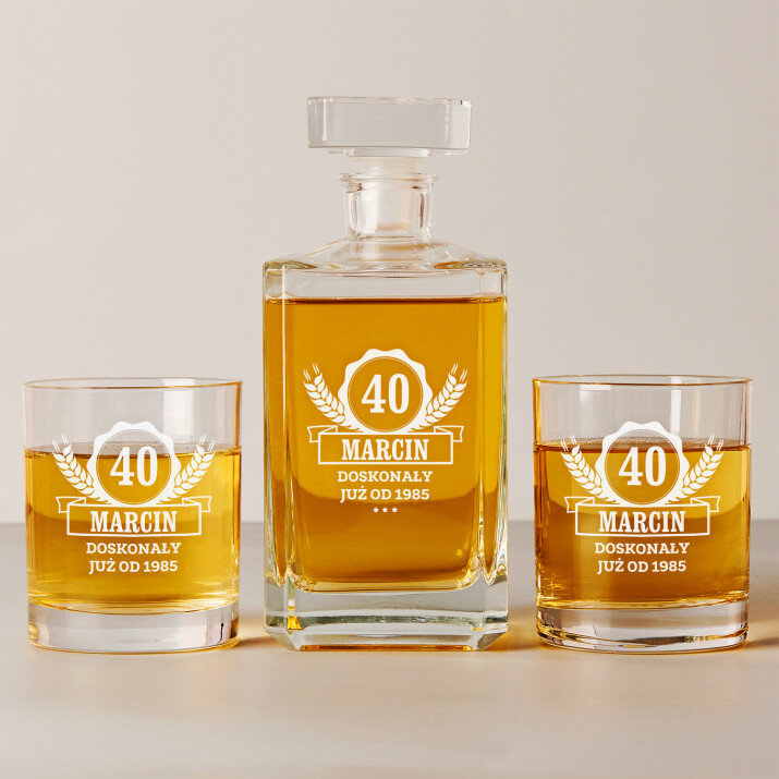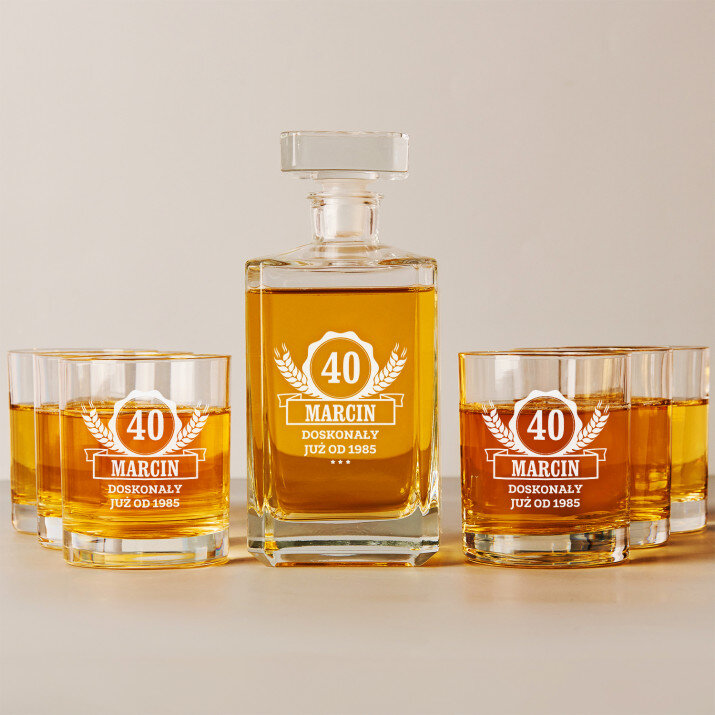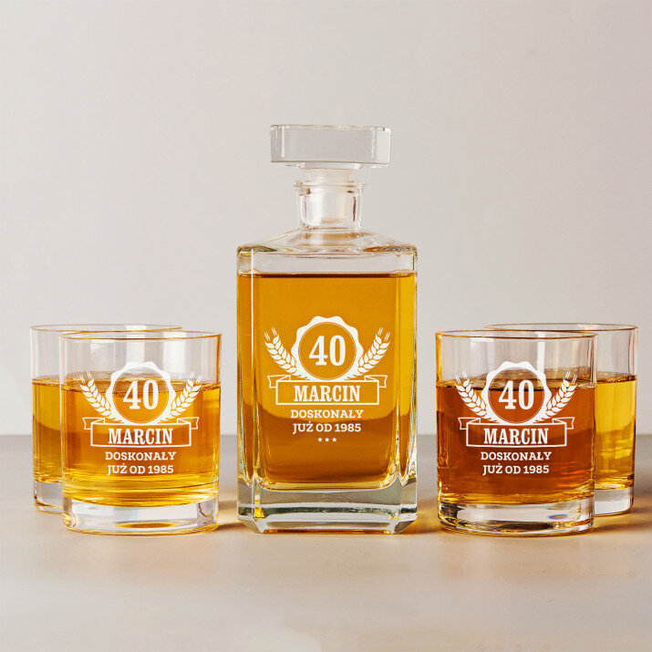 Wysokiej jakości zestaw szklanek to whisky z karafką z przezroczystego szkła to prezent, który pasuje na wiele ważnych okazji. W takiej karafce można zaserwować whisky, nalewkę lub inny ulubiony trunek. Prosta forma i elegancki styl sprawiają, że produkt będzie pasował zarówno do weekendowych spotkań z najbliższymi, jak i do uroczystych przyjęć. Kwadratowy kształt karafki załamuje światło, które pięknie wydobywa barwę trunku. Na powierzchni karafki umieszczamy personalizowany grawer, który dodaje upominkowi wyjątkowego charakteru. Stylowe szklanki do whisky są wykonane z bezbarwnego szkła z charakterystycznymi wgłębieniami w dnie, które przypominają kryształki lodu. Minimalistyczny i elegancki design sprawia, że ulubiony trunek pięknie się prezentuje, a gładkie ścianki wspaniale eksponują grawer.